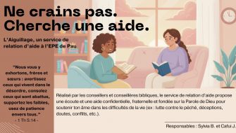 En savoir plus sur notre égliseNe crains pas. Cherche une aide. Réalisé par les conseillers et conseillères bibliques, le service de relation d’aide propose une écoute et une aide confidentielle,…